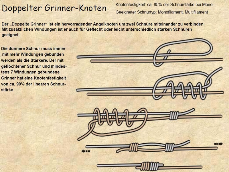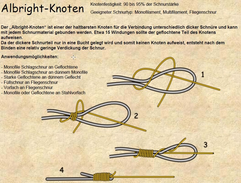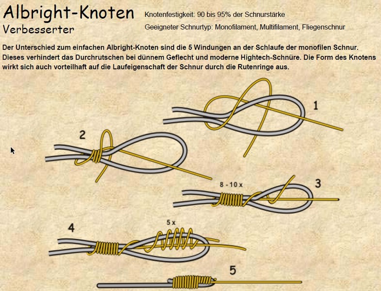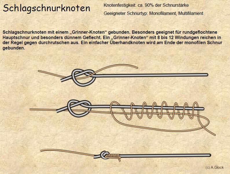 Da ich das Rad nicht neu erfinden muss, habe ich, mit freundlicher Erlaubnis, mir die Zeichnungen und Erklärungen von der Hompage www.angelknotenpage.de "geliehen".